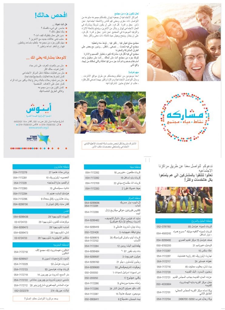 نوع الإعاقة:إضطرابات نفسيةاللغة:العبرية, العربيةالملكية:مؤسسة إنوش للصحة النفسية