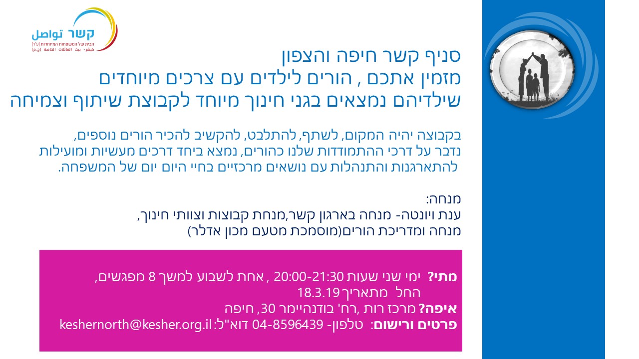 בקבוצה יהיה מקום,לשתף,להתלבט,להקשיב להכיר הורים נוספים,