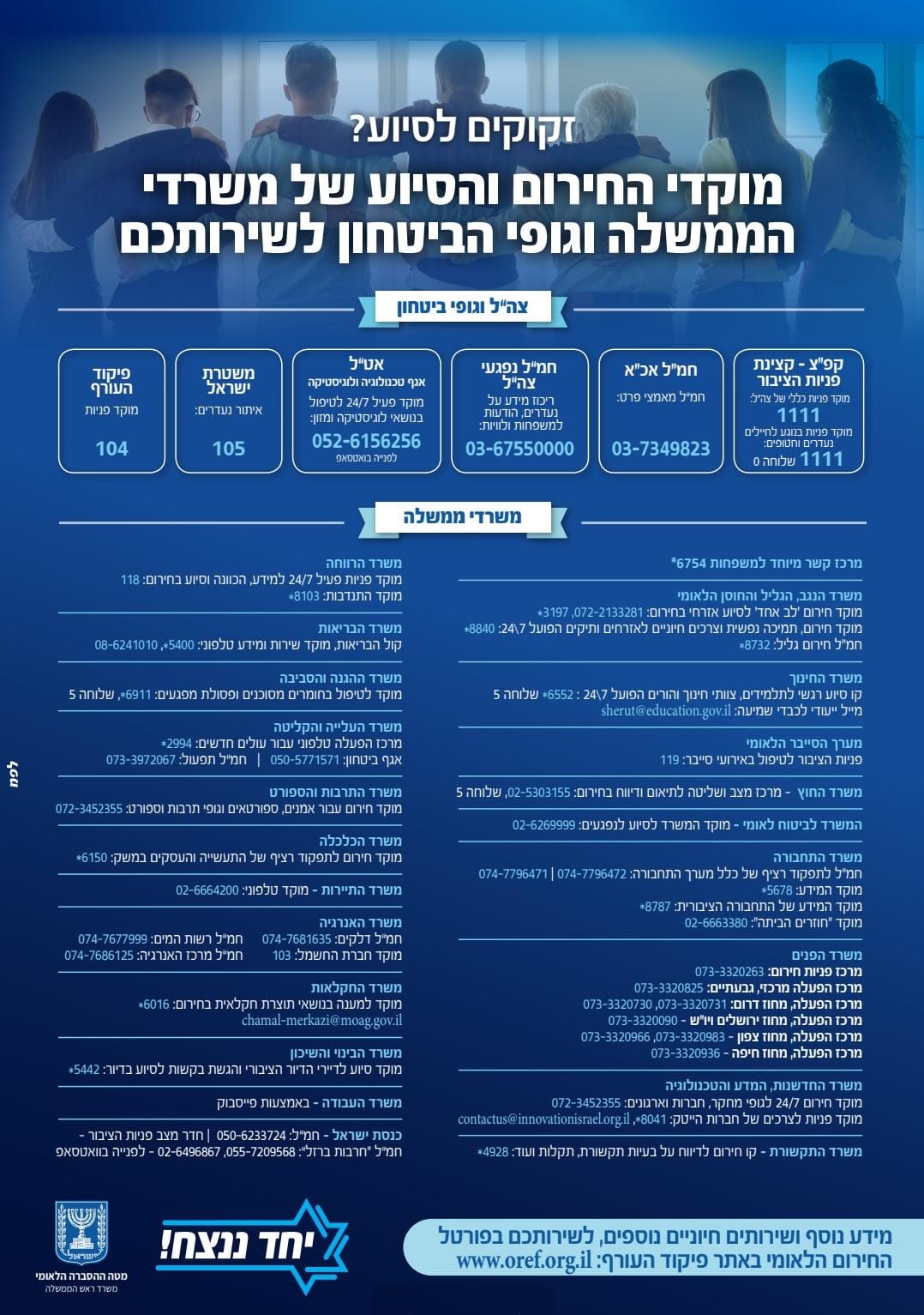 מוקדי החירום של מרכזי הסיוע בכל הארץ: