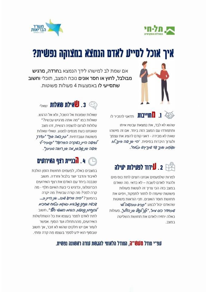 איך אוכל לסייע לאדם הנמצא במצוקה הנפשית? מאת מכללת תל חי ומשרד הבריאות